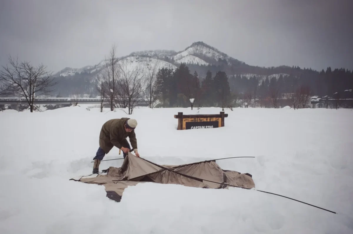雪中キャンプテント片付けあるあるの1つが『テントポールがめちゃ冷たい』である